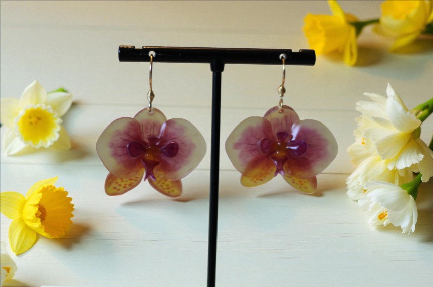 Ces boucles d’oreilles délicates en forme d’orchidée sont réalisées à partir d’un film polymère thermoformé, léger et résistant. Chaque pétale est colorié à la main au pastel tendre, ce qui apporte des nuances douces, vibrantes et complètement uniques d’une paire à l’autre.